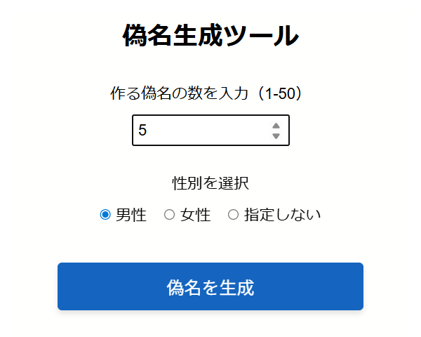以前に作った 昭和風偽名生成ツール を改善して、こちらのツールを作りました。