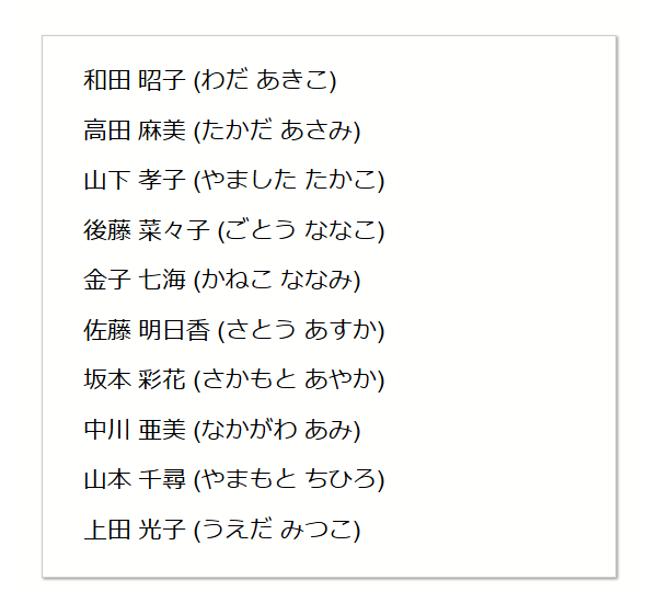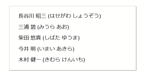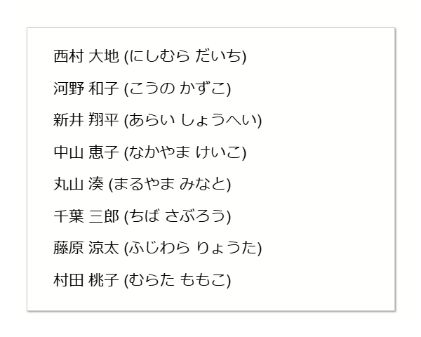 このツールでは、日本人に多い苗字と名前だけしか出てきません。