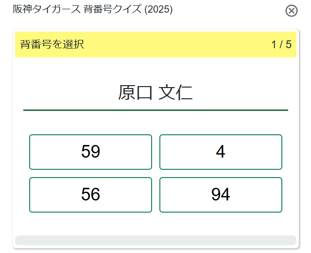 阪神タイガース背番号クイズの遊び方